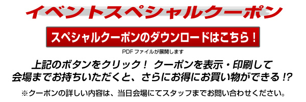 下記イベントクーポンをお持ちのお客様には、さらにお買い得な特典もご用意してお待ちしておりますので ぜひこの機会に皆様のご来店をお待ち致しております。