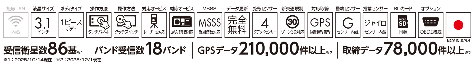 また、本体に登録されたGPSデータにより新型取締機「レーザー式固定オービス」にも対応。