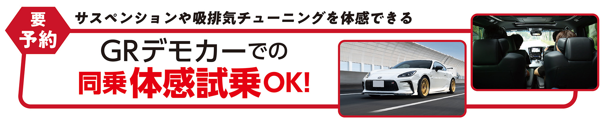 車高調「DAMPER ZZ-R」の試乗に加え、レーザー&レーダー探知機「Touch-LASER」の体感試着も実施。その他イベントだけの盛りだくさんの内容でGRオーナー様をお待ちしております!