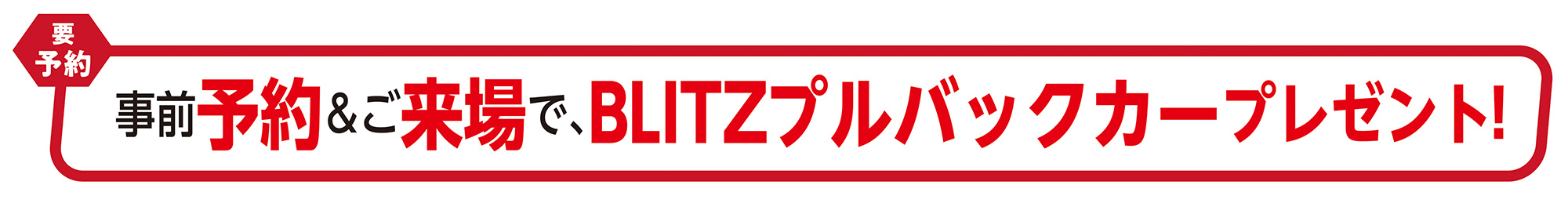 事前来場予約の上、BLITZスタッフと商品のご購入相談をいただいたお客様には特典としてもれなく「BLITZプルバックカー」をプレゼント。