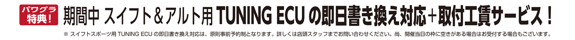 ※アルトワークス/ターボRS用の当日書き換え対応はできるだけ作業させていただきますが、場合によってはお断りする場合もございますので、予めご了承ください。