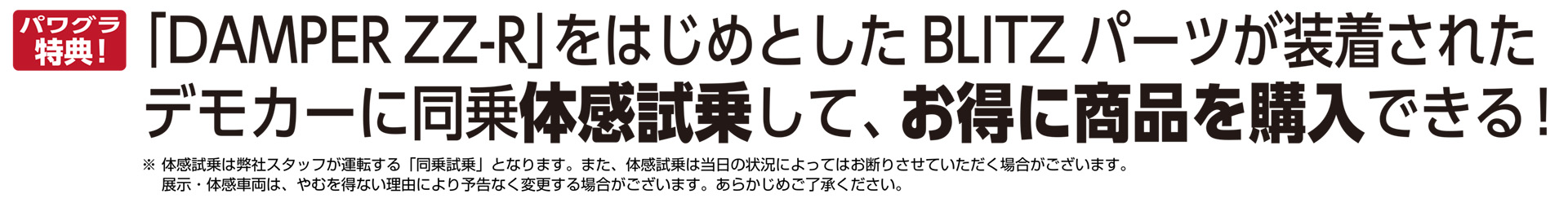 ブリッツデモカーで体感同乗試乗が可能!
