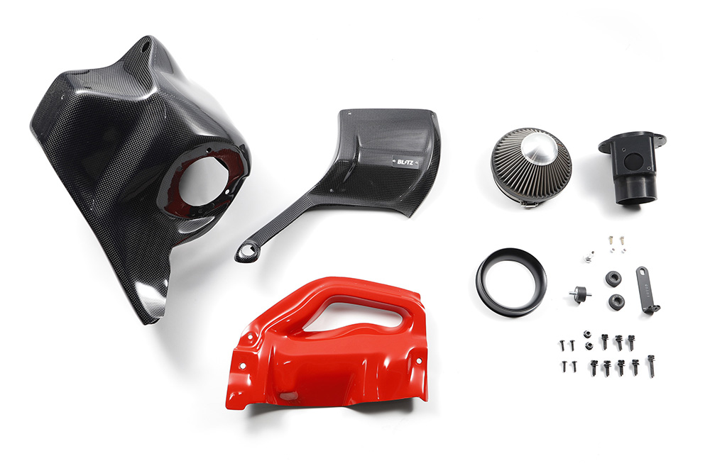 - 高度な形成技術により、エンジンルームにベストフィットするカーボンダクト&ケース付き高性能インテークシステム。