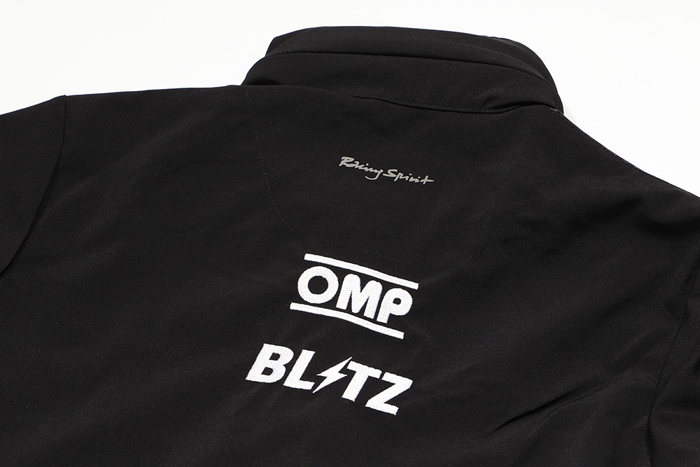 - イタリアの⽼舗レーシングギアブランド「OMP」と、「BLITZ」のブランドネームが刺繍されたロゴ⼊りソフトシェルライトジャケットです。