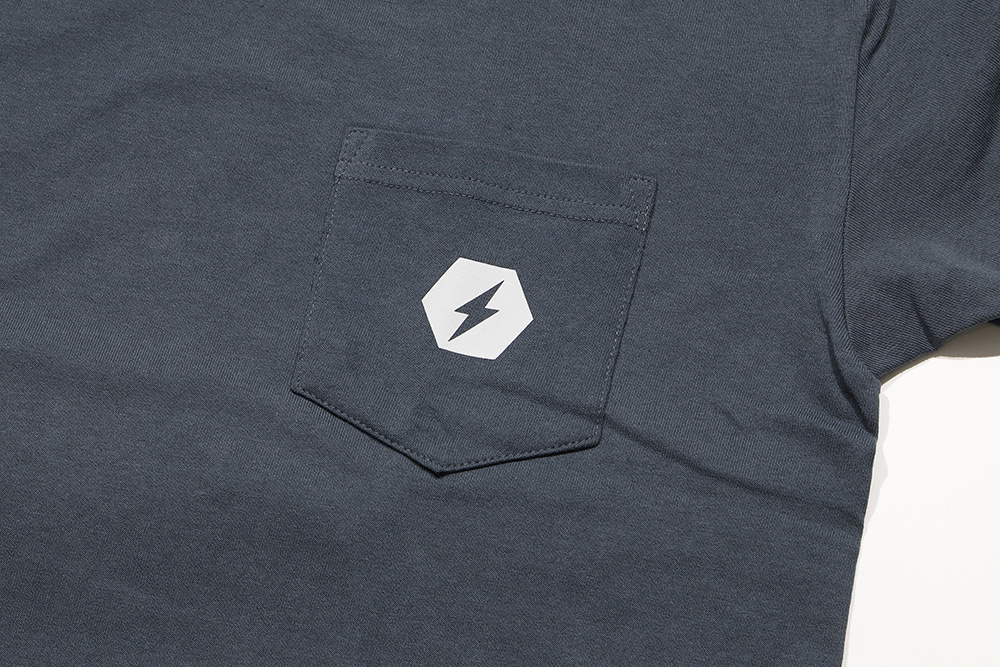 - 六⾓形のイナズママークを使ったロゴTシャツ。