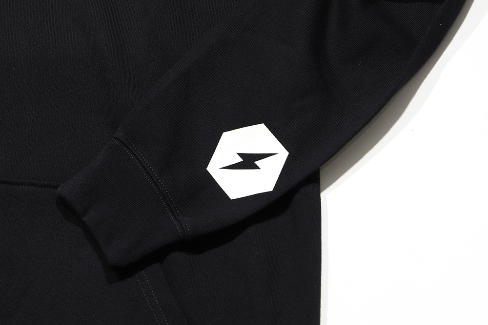 - ブリッツを意味する「稲妻」の漢字を配置した大判のバックプリントを採用。
