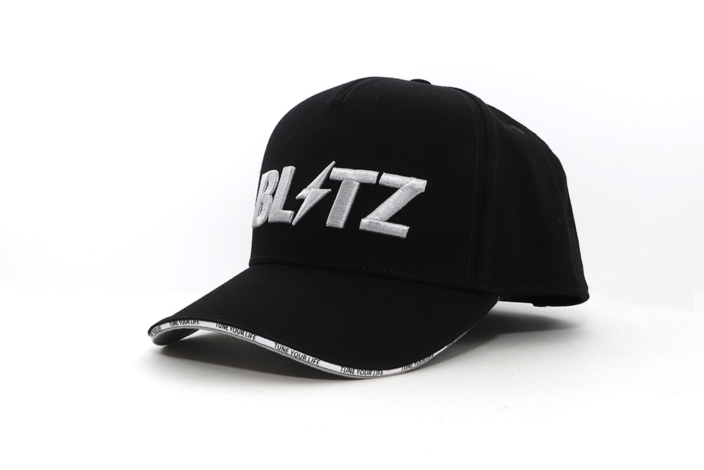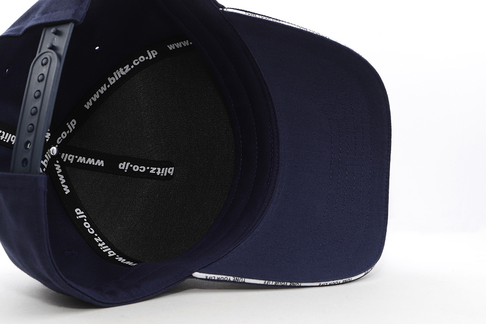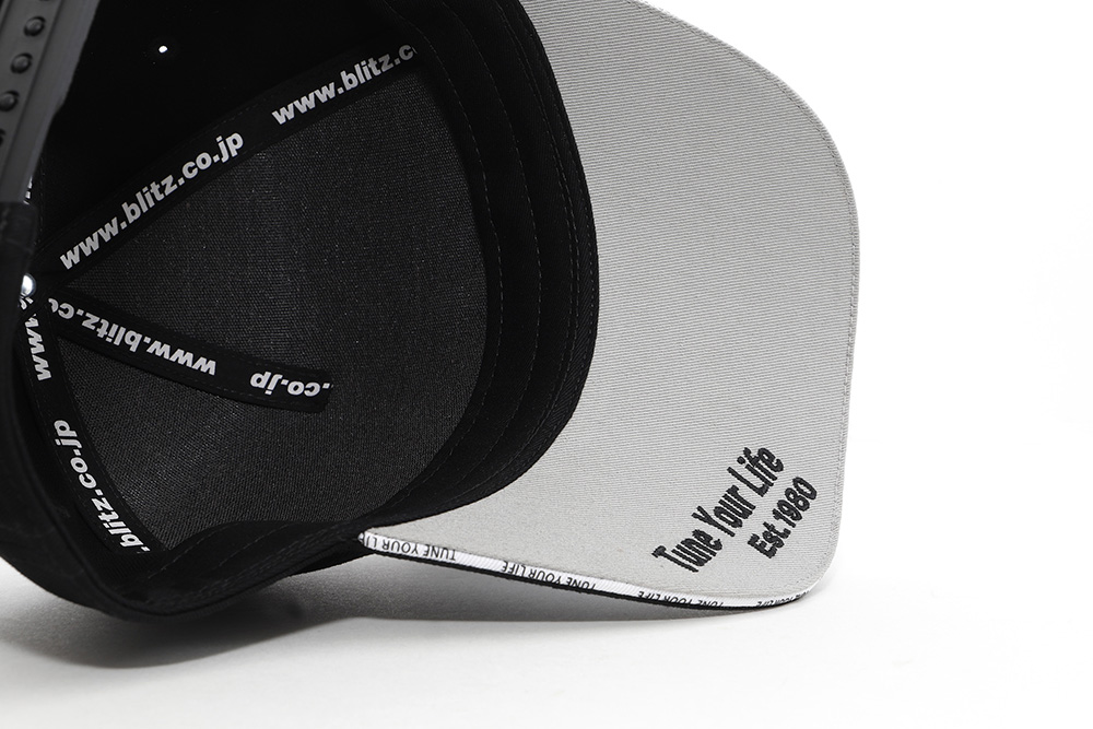 - BLACKは⼤きめの⽴体BLITZロゴに加え、つば裏にはブランドコンセプト「TUNE YOUR LIFE」のデザイン、後ろ側にも六⾓形のイナズママークを配置しました。