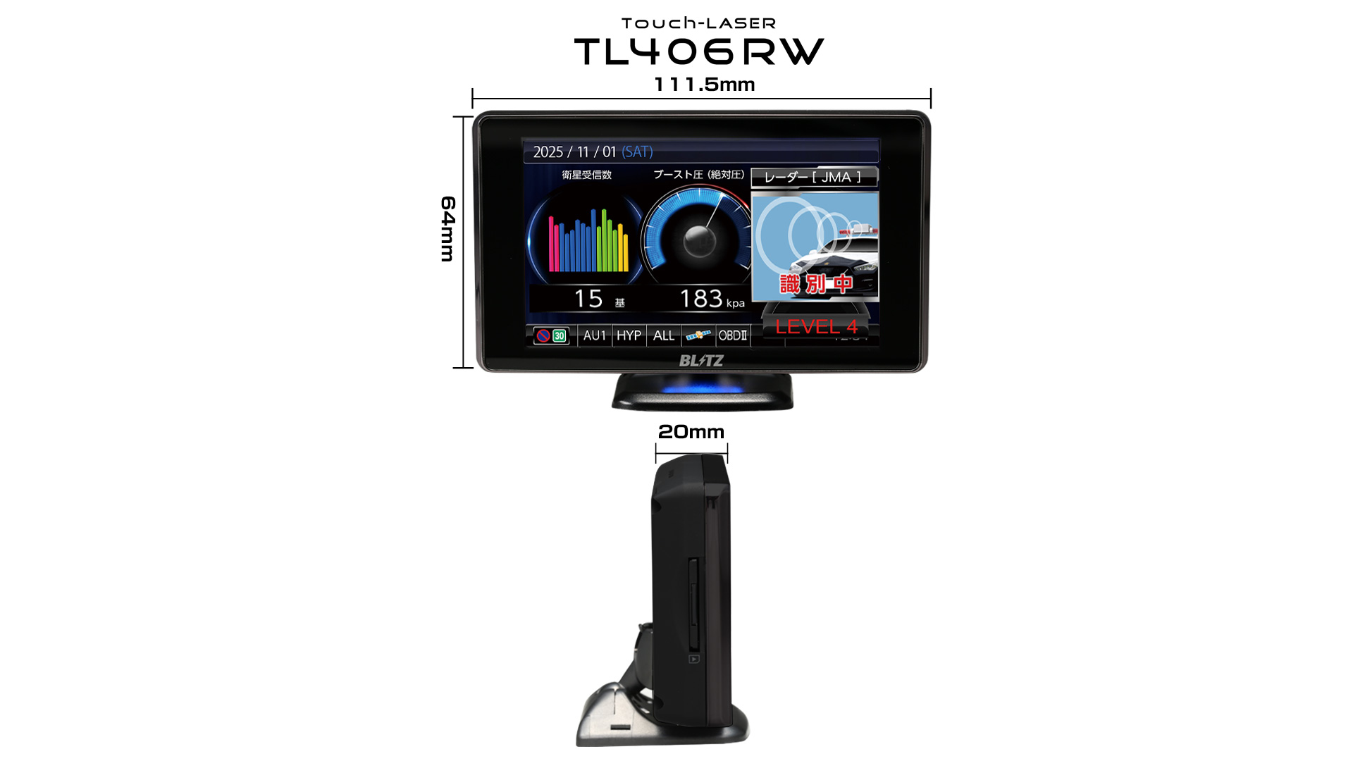※工場出荷時は公開取締データは保存されていません。無線LANに接続してダウンロード・更新するか、BLITZWebサイトよりダウンロードすることで表示できます。