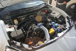 ターボ化をしたエンジンに関しては、NAであるBRZのエンジン内部のままでは圧縮比が高すぎるため、同じFA20系のターボ車となるBRGレガシィ用のエンジンパーツを用いて圧縮比を10.0程度まで下げることで、1.2kまで過給圧を上昇させ、400PS強の出力を実現している。